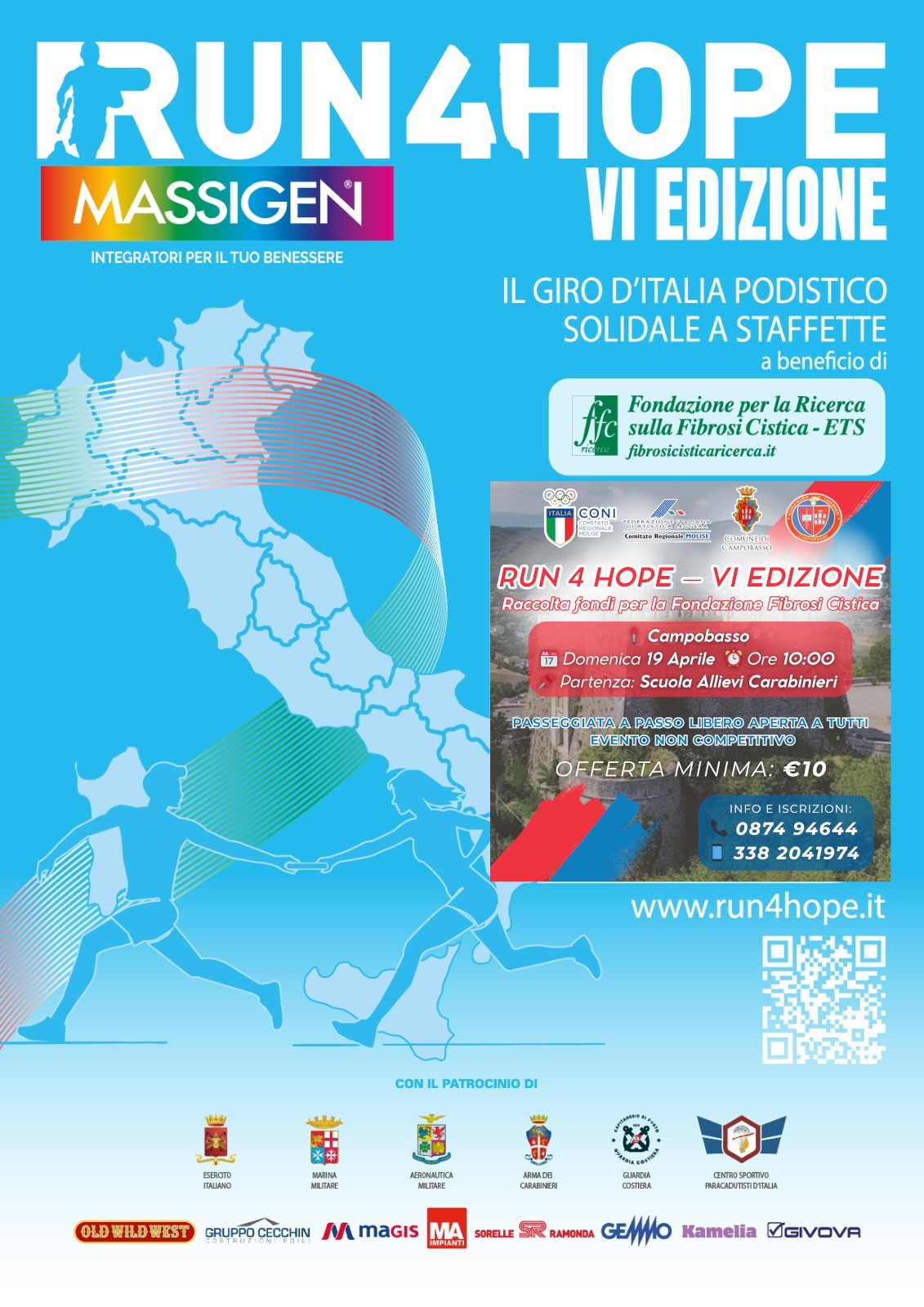 News 16 Apr 2026 RUN4HOPE 2026: IL MOLISE PROTAGONISTA DEL GIRO D’ITALIA PODISTICO SOLIDALE A SOSTEGNO DELLA RICERCA SULLA FIBROSI CISTICA RUN4HOPE 2026: IL MOLISE PROTAGONISTA DEL GIRO D’ITALIA PODISTICO SOLIDALE A SOSTEGNO DELLA RICERCA SULLA FIBROSI CISTICA IL Comitato Regionale Molise della FIDAL, con il patrocinio del CONI Molise sostiene e affianca il soggetto organizzatore a...